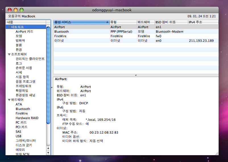 첨부한 그림파일의 상단에 적힌 이름이 그것입니다. 좌측에는 한글로 오동규의 맥북이라고 정상적으로 나와있죠...